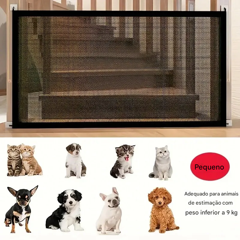 Mantenha seu cãozinho seguro e os ambientes da sua casa organizados com a nossa cerca de barreira para pets! Com um design dobrável, leve e super fácil de instalar, essa rede de segurança é a solução ideal para quem busca praticidade no dia a dia.